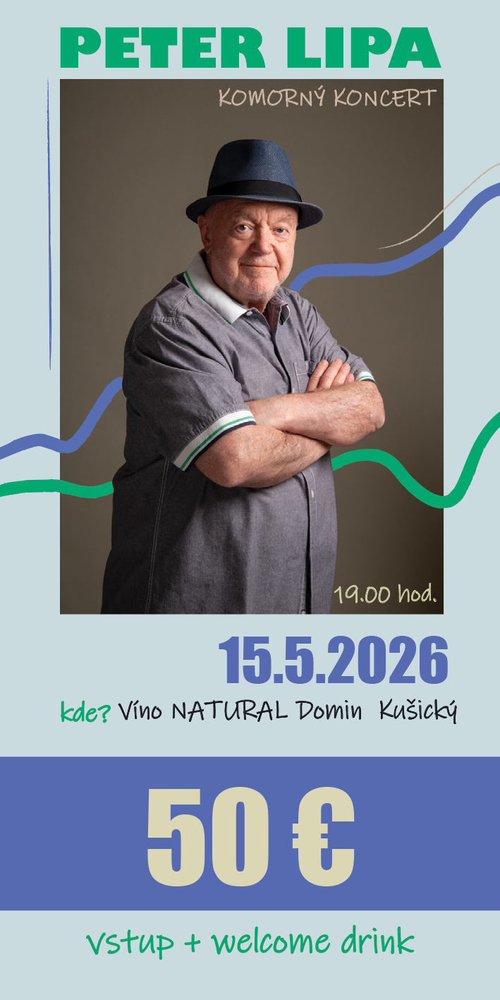 Komorný koncert Petra Lipu, ktorý sa bude konať v priestoroch nášho vinárstva. V cene vstupenky je zahrnutý welcome drink. Kapacita je obmedzená.